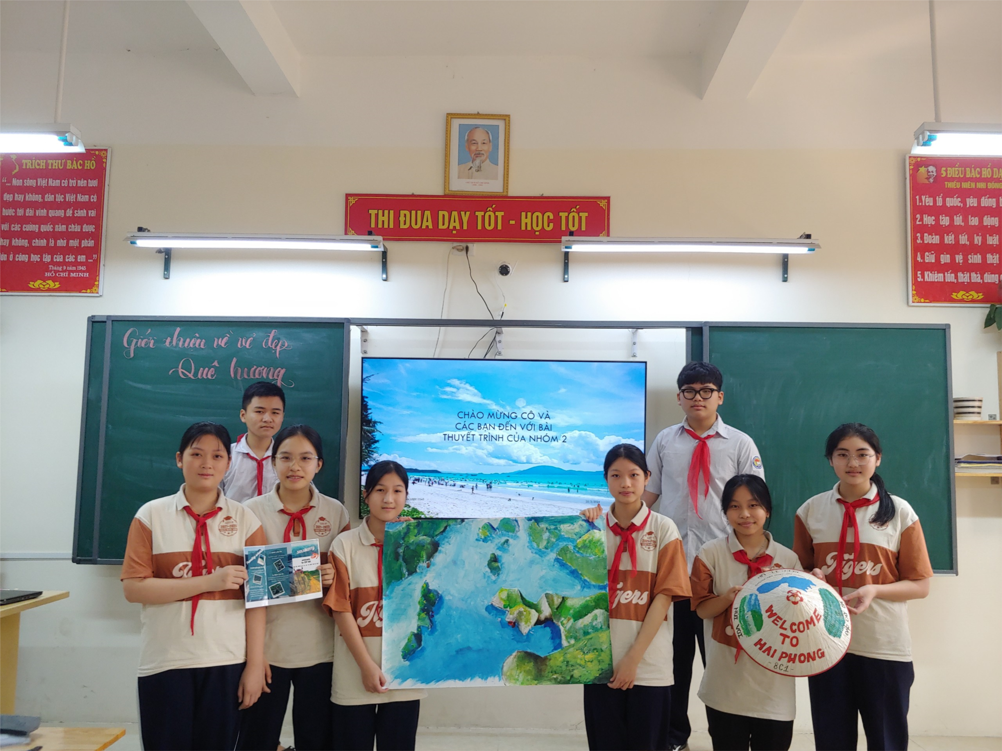 Ví như trong một tiết học môn Hoạt động trải nghiệm, hướng nghiệp lớp 8 - Chủ đề 7 "Em với thiên nhiên và môi trường", các em học sinh đã được tham gia thiết kế các sản phẩm quảng bá về vẻ đẹp của quê hương Hải Phòng thân yêu.