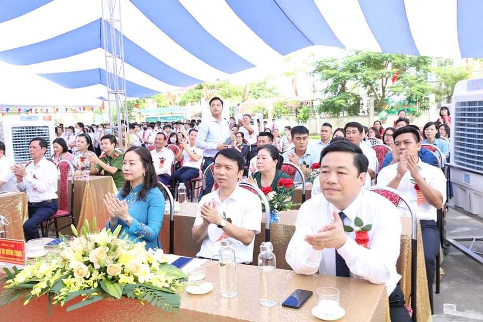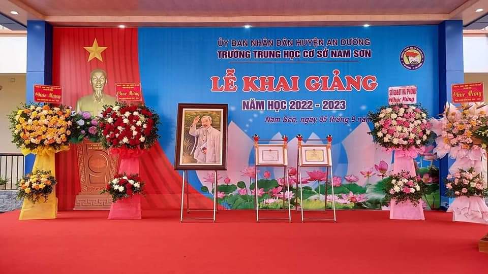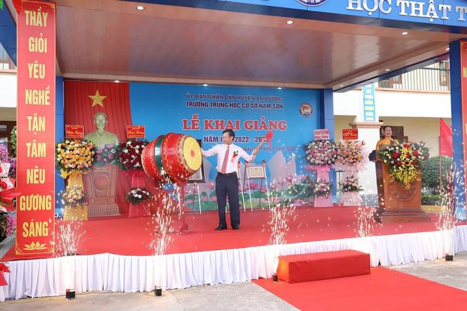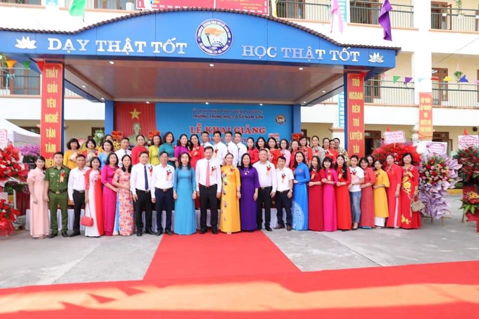 cùng các đồng chí lãnh đạo Phòng Giáo dục - Đào tạo, lãnh đạo địa phương về dự và động viên Lễ khai giảng của thầy và trò trường THCS Nam Sơn.