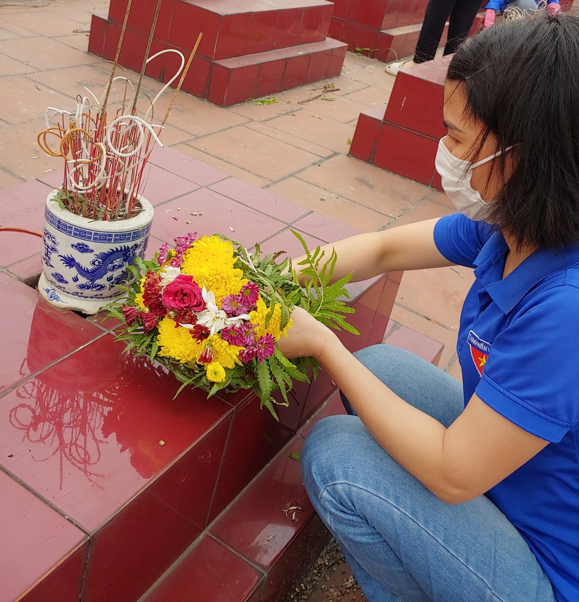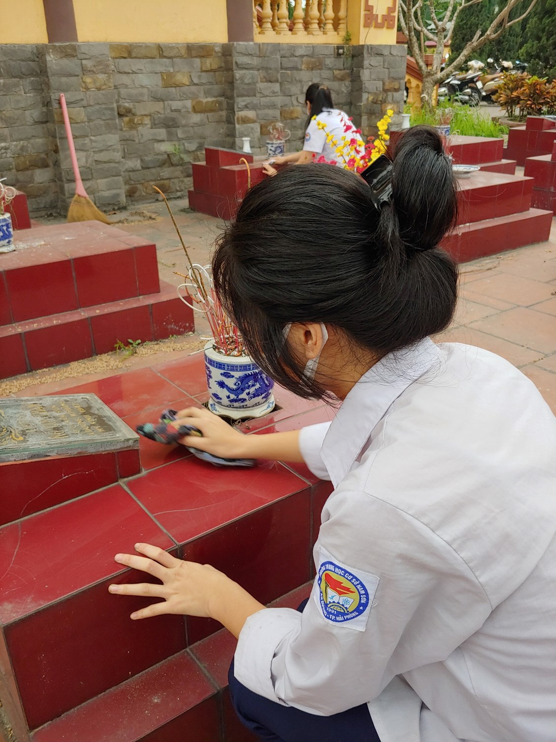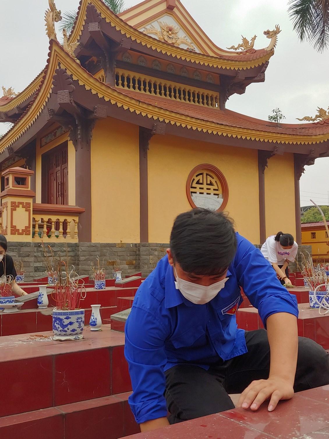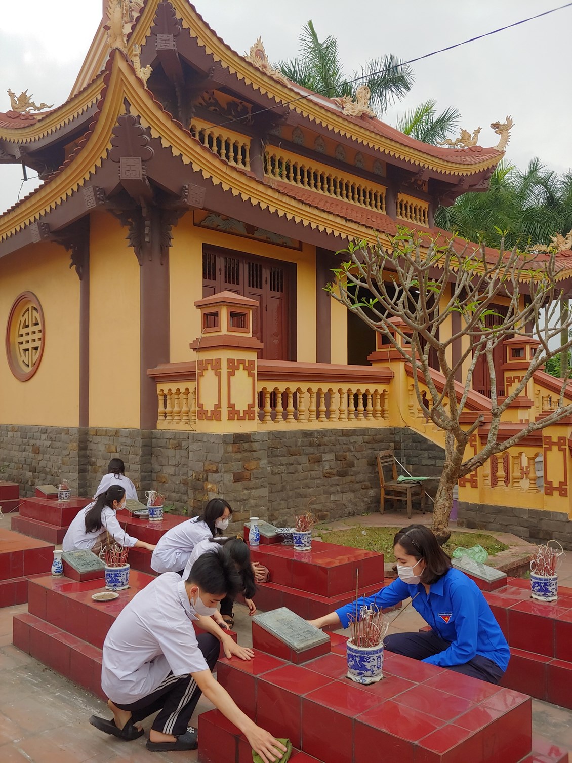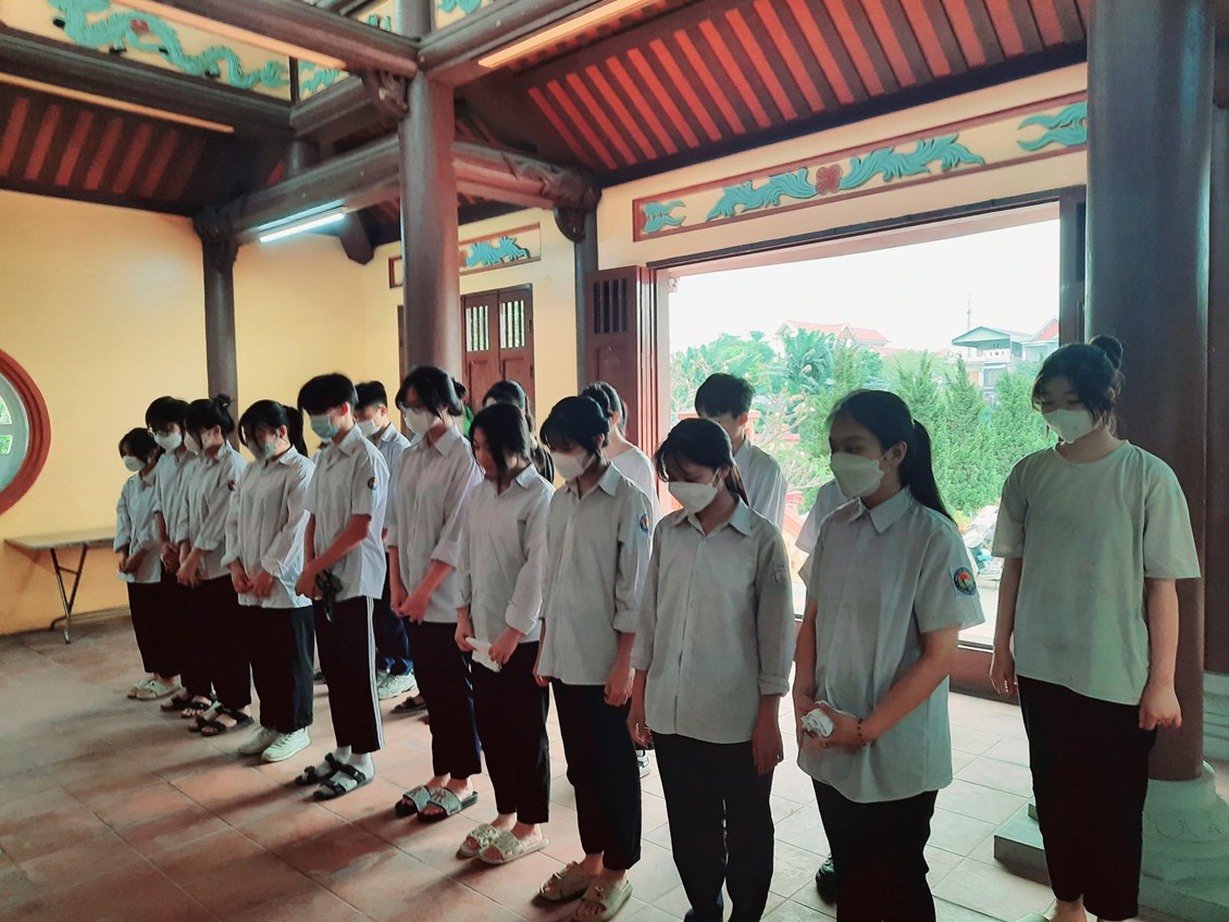 Bạn nào cũng thể hiện rõ thái độ trang nghiêm, thành kính.