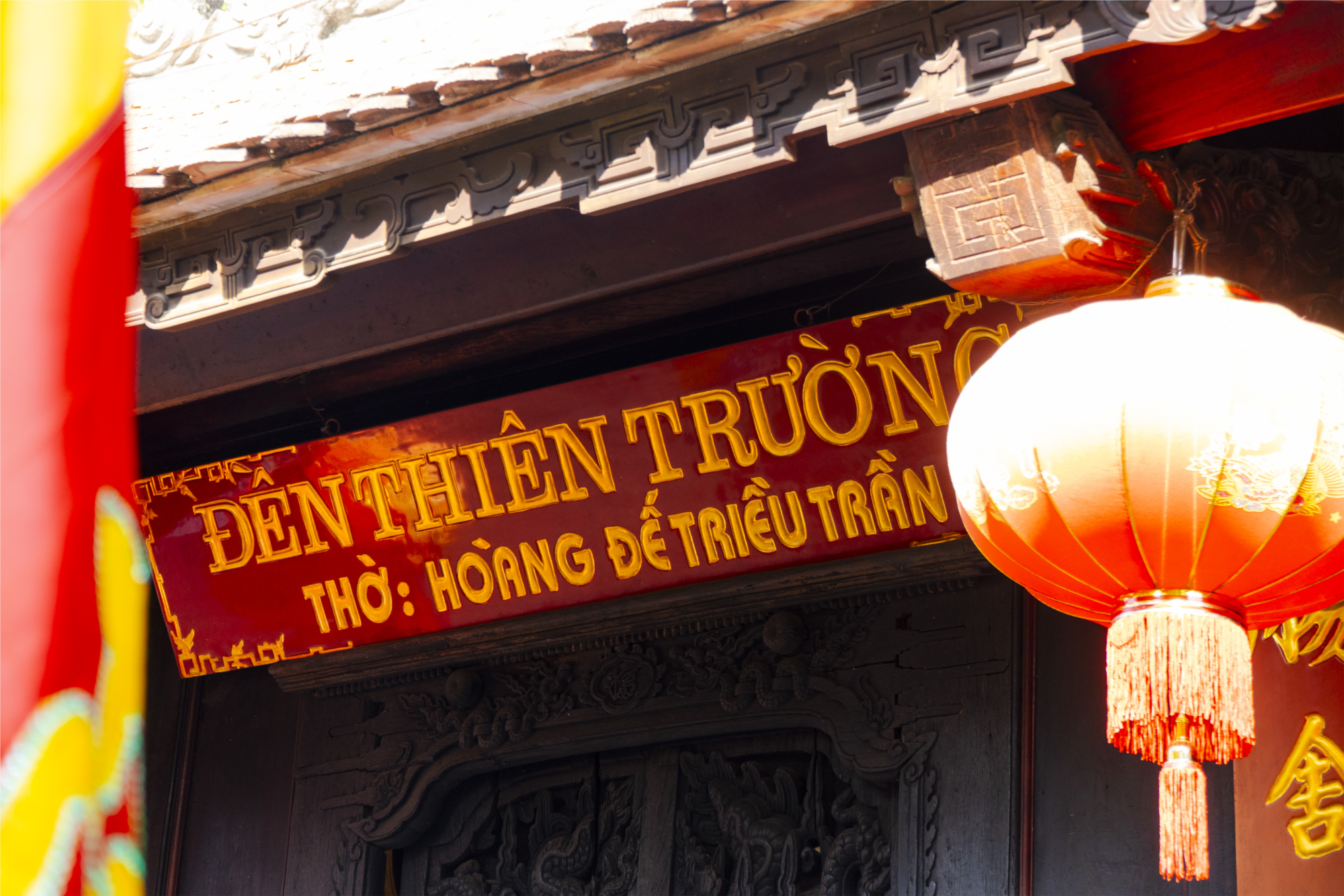 Lắng nghe thuyết minh về vương triều nhà Trần tại khu di tích