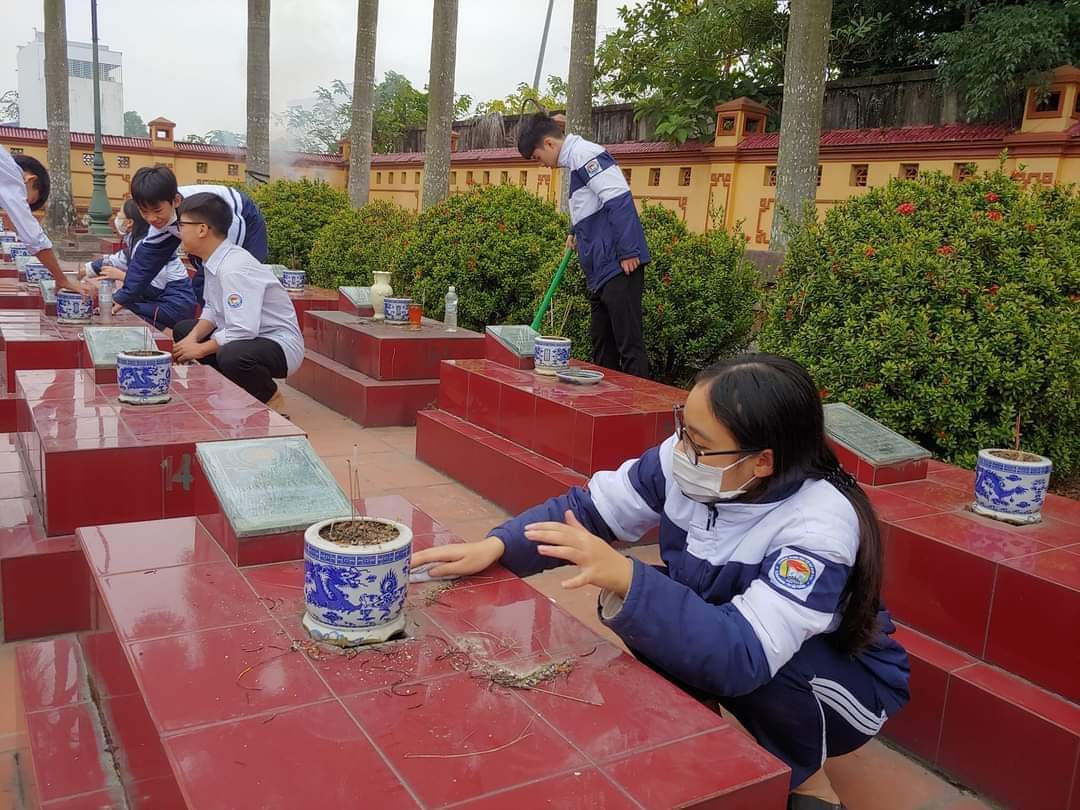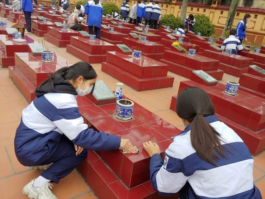 Mỗi lần đến với nghĩa trang Liệt sĩ xã nhà là một lần các em được giáo dục thêm về lòng biết ơn với các anh hùng chiến sĩ đã hi sinh vì độc lập dân tộc. Bởi vậy được đến nghĩa trang dọn dẹp vệ sinh mỗi dịp lễ tết các em đều rất ý thức, trách nhiệm và tự hào.